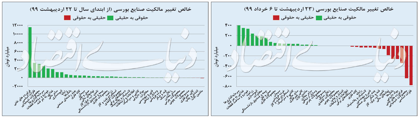 همانطور که عنوان شد نیمه دوم معاملات بورسبازان از تاریخ 23اردیبهشتماه به سمت زمین حقوقیهای بازار تغییر مسیر داد. در حالی بیشتر خریدهای سهامداران خرد در نمادهای گروه سرمایهگذاریها، غذایی، خودرو و ساخت قطعات و زراعت بود که حقوقیها نیز به حمایت از سهام بزرگ بازار و بهویژه کالاییها پرداختند. در این میان شاید بتوان جو روانی آزادسازی سهام عدالت و همچنین سردرگمی سیاستگذار در قانونگذاری را بیشترین عامل در تغییر مسیر بازار و در نهایت کاهش قیمت بزرگان بورسی دانست.