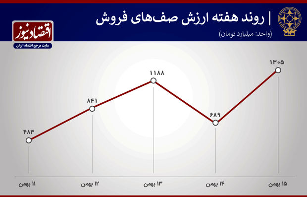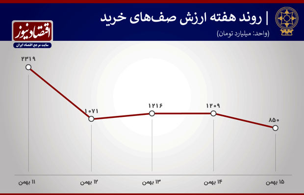 میانگین ارزش صفهای خرید در هفته اخیر هزار و 333 میلیارد تومان بود که از میانگین هفته گذشته 130 میلیارد تومان بیشتر بود. در این هفته، میانگین ارزش صفهای خرید 11 درصد افزایش یافته است. بالاترین رقم هفته 2 هزار و 319 میلیارد تومان بود که در روز شنبه ثبت شد و پایینترین رقم به روز چهارشنبه برمیگردد که 850 میلیارد تومان بود. همچنین میانگین ارزش صفهای فروش در هفته اخیر 901 میلیارد تومان بود که از میانگین هفته پیشین 506 میلیارد تومان کمتر بود و افت 36 درصدی داشته است. بالاترین رقم هفته هزار و 305 میلیارد تومان بود که در روز چهارشنبه ثبت شد و پایینترین رقم به روز شنبه برمیگردد که 483 میلیارد تومان بود. رشد میانگین ارزش صفهای خرید و افت میانگین ارزش صفهای فروش نشانه مثبتی برای سهامداران است هرچند که در روز چهارشنبه بازار با مازاد عرضه 455 میلیارد تومانی بسته شد.