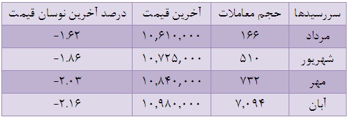 این میان روند نزولی سکه و دلار باعث شد تا پیش بینی معامله گران بازار آتی نیز کاهشی باشد و سررسیدها با ثبت نوسان حدود منفی 2 درصدی بسته شوند. به طوری که پیش بینی معامله گران از قیمت سکه تحویل آبان ماه تا یک میلیون و 98 هزار تومان عقب نشینی کرد.
