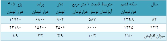 مقايسه افزايش قيمت خودرو ، سكه ، دلار، مسكن