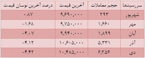 این میان نوسان اندک بازار ارز و سکه نقدی روز متفاوتی را در بازار آتی به ارمغان آورد تا سررسید شهریور ماه آخرین قیمت سال 92 خود را با افزایش اندک و در مدار 969 هزار تومانی ثبت کرده و سررسیدها دورتر یعنی قراردادهای آذر و دی ماه با ثبت نوسان حداکثر منفی به فروش برسند، بطویکه پیش بینی معامله گران از قیمت سکه تحویل دی ماه به یک میلیون و 48 هزار تومان برسد.