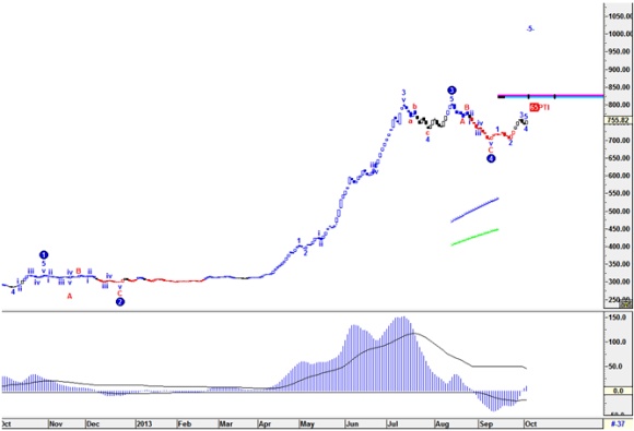 وی به بررسی شاخص صنعت سیمان نیز پرداخت و گفت: روند حرکتی این صنعت در نمودار روزانه حاکی از تداوم موج پنج صعودی است و این شاخص محدوده 828 واحدی را به عنوان هدف موج پنجم دنبال می کند.