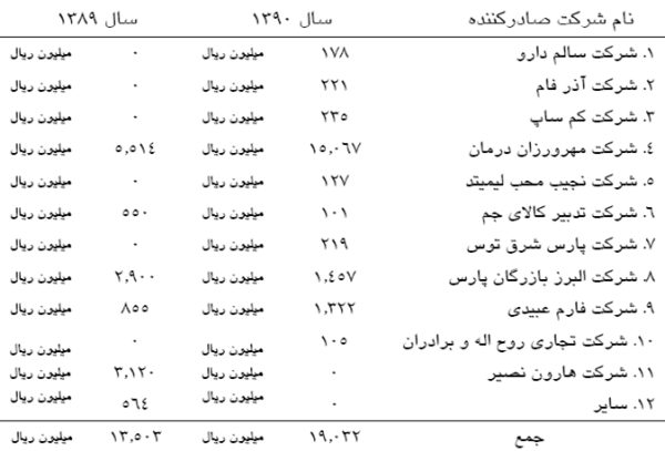 ضمناً معادل 19.032 میلیون ریال جهت صادرات به کشورهای افغانستان، آذربایجان، ازبکستان، عراق، اکراین، ترکمنستان، تاجیکستان و دوبی توسط شرکتهای صادر کننده دارو بصورت ریالی و دلاری بشرح زیر انجام شده است.
