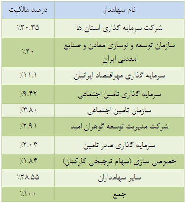 ترکیب سهامداران شرکت در تاریخ 1392.10.3 به ترتیب جدول زیر بوده است: