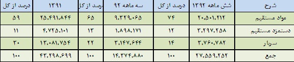 هزینه دستمزد مستقیم سال 92 با رشد 25 درصدی نسبت به سال 91 و هزینه دستمزد مستقیم سال 93 با رشد 20 درصدی نسبت به هزینه دستمزد برآوردی سال 92 بدست آمده است. در برآورد هزینه سربار سال 92، هزینه انرژی و استهلاک مشابه سال گذشته و هزینه مواد کمکی و سایر با رشد 30 درصدی منظور شده اند. در برآورد هزینه سربار سال 93 با توجه به احتمال اجرای طرح هدفمندسازی یارانه ها در سال آتی، پیش بنی رشد دو برابری هزینه انرژِ شده است. همچنین هزینه مواد کمکی و سایر هزینه های سربار با رشدی 20 درصدی در نظر گرفته شده اند. بدین ترتیب هزینه های سربار برای سال 92 و سال 93 به ترتیب 15.042و 21.101 میلیارد ریال حاصل می شود.
