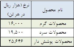 مقدار فروش را برای شش ماهه دوم سال جاری با توجه به مشکلاتی که شرکت در سه ماهه دوم سال داشته است، معادل 0.95 مقدار تولید درنظر می گیریم. مقدار فروش در سال 93 برابر با مقدار تولید در نظر گرفته می شود. نرخ فروش محصولات برای شش ماهه دوم سال جاری و همچنین سال 93 با توجه به میانگین نرخ فروش محصولات در بورس کالا از ابتدای مهرماه سال جاری به ترتیب زیر برآورد گردیده است:
