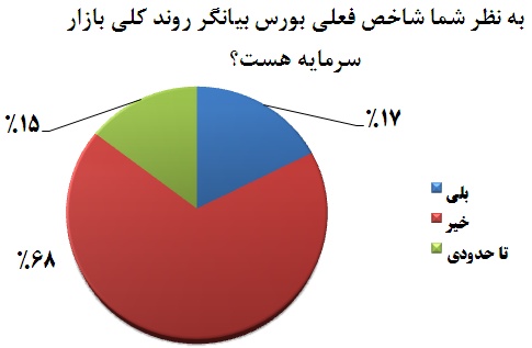 در حالی که حدود 18 درصد از شرکت کنندگان در این نظرسنجی معتقدند که شاخص کل فعلی بورس نشان دهنده وضعیت اقتصادی و روند کلی بازار سرمایه می باشد.