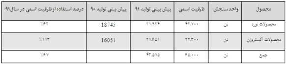 جدول فوق بيانگر بودجه سال 1391 شرکت است که با بودجه سال 1390 مقايسه شده است.