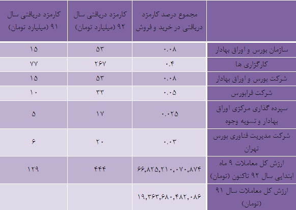 این میزان درآمدها از محل کارمزد معاملات در شرایطی به دست می آید که سایر درآمدها از جمله حق پذیرش شرکت های جدید نیز به آنها افزوده می شود.