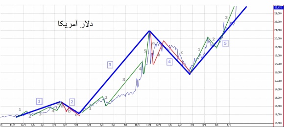 البته براساس نمودارها به نظر می رسد دلار سقف قیمتی قبلی خود را شکسته و در موج پنجم صعودی طولانی مدت خود به سر می برد و با توجه به حضور در موج سوم صعودی آن در میان مدت، احتمالاً تا حدود 2500 تومان رشد را تجربه خواهد کرد.