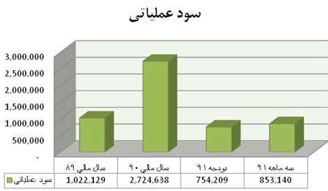 1- در سال مالی 90 با کسر هزینه های عمومی اداری به مبلغ 3.603 میلیارد ریال از سود ناخاص، سود عملیاتی با رشد چشمگیر 167 درصدی به میزان 2.725 میلیارد ریال محقق شده است که در بودجه 91 این آیتم به میزان 754 میلیارد ریال برآورد شده است در حالی که در عملکرد 3 ماهه شرکت، سود عملیاتی بیشتر از مقدار پیش بینی شده محقق شده است.