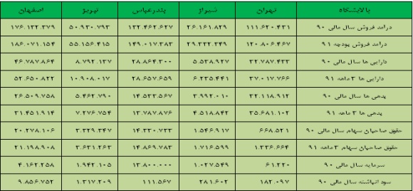 3- با کسر مالیات از سود قبل از کسر مالیات: سود خالص در سال مالی 90 با 348 درصد رشد به میزان 2.186 میلیارد ریال محقق شده است. این در حالی است که در بودجه 91 برآورد این آیتم به رقم 631 میلیارد ریال تقلیل یافته است.