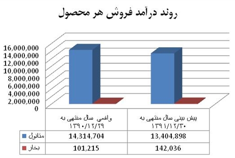 1-1- درآمد فروش شركت ، ناشي از فروش محصول متانول است. درآمد فروش اين محصول در بودجه 91 با كاهش 6 درصدي نسبت به سال مالي 90 پيش بيني شده است.