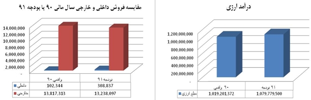 3-1- بر اساس بودجه 91، شركت 98 درصد محصولات خود را صادر مي كند. در بودجه 90 اين ميزان 99 درصد بوده است.