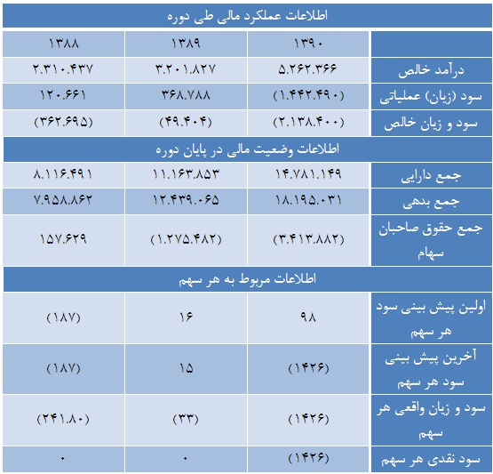 براین اساس، این شرکت اولین پیش بینی درآمد هر سهم سال مالی 89 را با سرمایه 150 میلیارد تومان مبلغ 16 ریال سود اعلام کرد. این در حالی بود که برآورد مبلغ درآمد پیمان ها و بهای تمام شده آنها در صورت سود و زیان پیش بینی شده با توجه به درصد پیشرفت برنامه ریزی شده سال 1390 و براساس برآوردهای صورت گرفته در شهریور 1388 بود که در زمان تهیه بودجه مورد بازنگری و محاسبه مجدد قرار نگرفته بود.