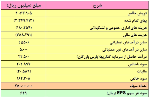در صورت محقق شدن برنامه تولید و فروش ، آخرین وضعیت سود هر سهم (EPS) برای سال 91 که به سازمان بورس ارائه شده است به شرح جدول زیر پیش بینی شده است: