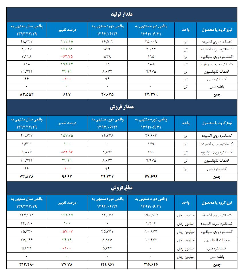 در جدول زیر وضعیت تولید و فروش شرکت مورد بررسی قرار گرفته است.
