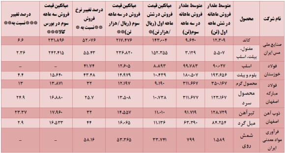 نکته دیگری که براساس این جداول می توان دریافت این است که میانگین نرخ فروش سه ماهه سوم این شرکت ها در بورس کالا بیشتر از آن نرخی است که با توجه به عملکرد واقعی سه ماهه سوم از صورت های مالی آنها استخراج شده است که شاید لازم باشد دلایل این تفاوت از سوی شرکت ها بیان شود.