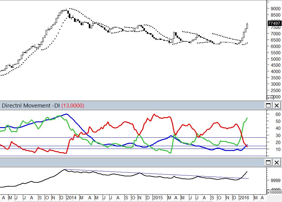 شاخص معدل اندازه حرکت ADX با عبور از سطح 25 شروع روند صعودی را تایید می کند، پارابولیک سار نیز با تشکیل نقاط حمایت هندسی روند را تایید کرده است، اندیکاتور حجم متوازن OBV ، روند نزولی خود را شکسته است و حرکت جدید شاخص را متمایز از حرکت های قبلی در دو سال قبل نمایش می دهد.