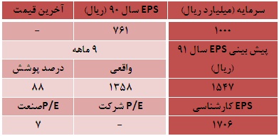 با توجه به تغییر نرخ خوراک و در پی آن افزایش نرخ فروش محصولات برآورد درآمد هر سهم برای سال مالی 91، مبلغ یک هزار و 706 ریال می باشد که نسبت به سود برآوردی شرکت با 18 درصد رشد همراه است.