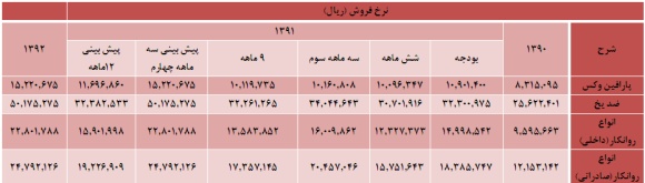 *نرخ فروش محصولات شرکت به استثنای روانکار صادراتی در سه ماهه چهارم با 50 درصد افزایش در نظر گرفته شده که این افزایش به تصویب سازمان حمایت از مصرف کننده نیز رسیده است.