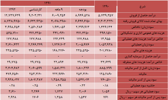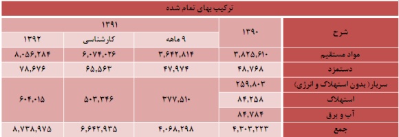 *عمده بهای تمام شده کالای فروش رفته مربوط به مواد مستقیم می باشد.