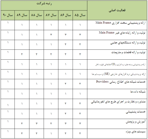 - کسب دوباره رتبه یک صنعت انفورماتیک بعد از 5 سال در کلیه زمینه ها بر اساس ارزیابی شورای عالی انفورماتیک