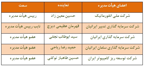 5- اعضای هیأت مدیره جدید به شرح زیر انتخاب گردیدند: