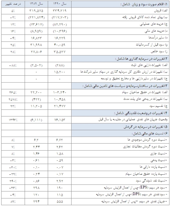 گزارش عملکرد مالی شرکت در دو سال اخیر به صورت مقایسه ای همراه با درصد تغییرات نسبت به سال قبل در ذیل ارائه شده است.