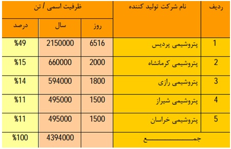 همانطور كه مشاهده مي شود از نظر سرمايه اين شركت سرمايه اش برابر با پتروشيمي كرمانشاه مي باشد اما ظرفيت توليدي اوره كمتري داشته و به جاي آن به توليد كريستال ملامين ميپردازد