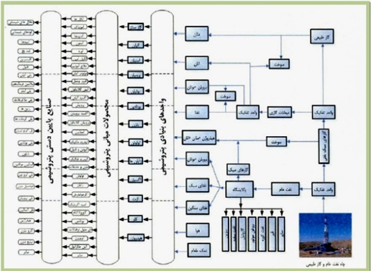 نمودار زنجيره توليد محصولات پتروشيمي از نفت خام و گاز طبيعي