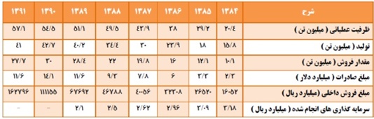جدول ظرفيت عملياتي و ميزان توليد واحدهاي پتروشيمي ايران از سال 1384 تا سال 1391