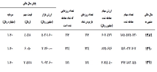 وضعيت سهام شركت طي سه سال اخير به شرح زير بوده است: